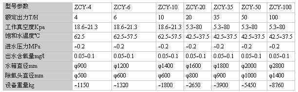 型號表示方法 ZCY—50T/H | |-----處理水量50T/H |----------真空除氧器