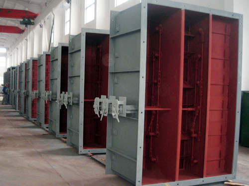 新型冷熱風(fēng)隔絕門(mén)是在第三代產(chǎn)品基礎(chǔ)上,通過(guò)國(guó)內(nèi)外許多專(zhuān)家及多家電廠長(zhǎng)期使用情況下,多方提出改進(jìn)意見(jiàn)、研究開(kāi)發(fā)并投放市場(chǎng)的新產(chǎn)品。。由于該風(fēng)門(mén)使用特殊材質(zhì),在溫度高、風(fēng)壓大、積灰多,有蒸汽的情況下都長(zhǎng)期安全運(yùn)行,完全代替原有翻板門(mén)關(guān)不嚴(yán)、開(kāi)啟關(guān)閉不靈活、積灰易卡死、檢修不方便等特點(diǎn),能夠滿足各電廠、電站、鍋爐、機(jī)組安全運(yùn)行,設(shè)備檢修方便的要求,該風(fēng)門(mén)外型美觀,結(jié)構(gòu)合理、無(wú)需任何輔助設(shè)施,優(yōu)于氣動(dòng)隔絕門(mén)。 我公司生產(chǎn)隔絕門(mén)具有安全性能好、密封嚴(yán)、開(kāi)啟關(guān)閉靈活、檢修方便、有遠(yuǎn)程、近程、手動(dòng)等操作功能,能夠取代原有熱風(fēng)隔絕門(mén)、翻板門(mén)關(guān)不嚴(yán)等優(yōu)點(diǎn)。取代送、引風(fēng)機(jī)原有翻板門(mén)關(guān)不嚴(yán),導(dǎo)致大量漏風(fēng)、使風(fēng)機(jī)倒轉(zhuǎn)及風(fēng)機(jī)出現(xiàn)故障時(shí),不必停爐檢修等優(yōu)點(diǎn)和功能。