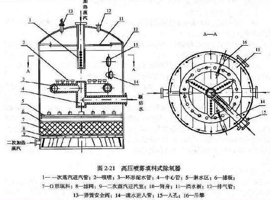 神美生產(chǎn)熱力除氧的充要條件: 1、除氧器的水必須加熱到除氧器工作壓力下的飽和溫度。 2、必須把水口溢出的氣體及時(shí)排走,以保證液面上氧氣及其它氣體的分壓力減至零或最小。 3、被除氧的水與加熱蒸汽應(yīng)有足夠的接觸面積,蒸汽與水應(yīng)逆向流動(dòng)。 4、貯水箱設(shè)再沸騰管,以免水箱的水溫因散熱降溫低于除氧器壓力下的飽和溫度,產(chǎn)生返氧。 神美生產(chǎn)低壓旋膜式除氧器結(jié)構(gòu)及特點(diǎn): 1、神美公司生產(chǎn)的低壓旋膜式除氧器。 2、結(jié)構(gòu):殼體、水箱、除氧頭、進(jìn)水管、進(jìn)汽管、旋膜管、淋水篦子、填料、再沸騰管、防旋板、儀表。