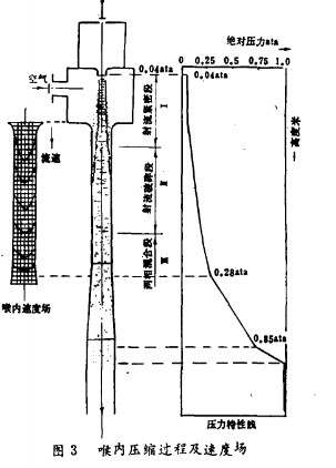 ■改進(jìn)后新型抽氣器的運(yùn)行結(jié)果表明,經(jīng)濟(jì)效益顯著: (i)新、舊抽氣器抽吸空氣量(出力)均為20kg/h,新型抽氣器的耗水量比舊型的降低29.7%。 (ii)計(jì)算耗功:新型比舊型降低31.8%,實(shí)測(cè)電耗由96.skwh/h降到70kwh/h,新型抽氣器的電耗降低27.5%。振動(dòng)、噪音減少,由99dB降到88dB。 ■新射水抽氣器,射水抽汽器的節(jié)能原理新射水抽氣器,射水抽汽器的改進(jìn)主要是降低內(nèi)部損失,增大做功能力。首先由射水抽氣器,射水抽汽器的內(nèi)22備效率來(lái)分析。由式(1)可知,射水抽氣器,射水抽汽器的內(nèi)部損失發(fā)生于從進(jìn)口至排管的全部流程中。欲提高抽氣器的效率,正確分析全部流程的變化是很重要的。工作水從噴嘴噴出時(shí),流速增加,從而使噴嘴前后產(chǎn)生靜壓差,迫使流休加速,因流通截面突然擴(kuò)大,流束受到向外的擴(kuò)張作用,從一定的角度射向吸入寶,運(yùn)動(dòng)中水束的質(zhì)點(diǎn)將所攜帶的動(dòng)能傳遞給包圍于水束的外圍的空氣,使其隨之下行。顯然,只有當(dāng)水束及其所攜帶的空氣能全部順利地進(jìn)入喉管,才能獲得高效率。從公式看出,增加工作水噴嘴的壓力降公PP,可提高引射系數(shù),增加效率。但是,在實(shí)際中,單純靠增加水泵的出水量是不能達(dá)到提高效率這一目的的。因?yàn)樵诖送瑫r(shí)也增加了能耗;另一方面,對(duì)每一種抽氣器來(lái)說(shuō),水量的增大都有一個(gè)極限值,超過(guò)這一極限,吸氣居相反會(huì)減少。這是由于: (l)過(guò)量容積的水進(jìn)入一定截面的喉管,進(jìn)喉竹的空氣量必然減少了; (2)水噴嘴口徑一定時(shí),提高水壓,噴射角增大,水、氣射流的外緣極易撞擊于喉管之外。因而,大的工作壓力能形成高的真空和大流量比,但是這并不意味著大的工作水壓就具有高的效率,而正相反,在抽真空時(shí),往往是較低的工作壓力能獲得較高的效率。當(dāng)然工作壓力并非越小越好,如果太小,甚至小于某一極限,會(huì)產(chǎn)生返水導(dǎo)致工作中斷。因而應(yīng)尋求一最優(yōu)工作壓力。 ■截面比改進(jìn)的節(jié)能原理犯吸入室中,空氣的質(zhì)量遠(yuǎn)比水的質(zhì)且小,若要增強(qiáng)水束對(duì)空氣的引射能力,進(jìn)入吸入室的工作水的流速至關(guān)重要,因?yàn)橘|(zhì)點(diǎn)的動(dòng)能與其速度平方成正比。適當(dāng)?shù)乜s小噴嘴口徑,可提高進(jìn)水壓力以增大水的流速,水質(zhì)點(diǎn)動(dòng)能增加,同時(shí)又降低了抽氣器的耗水量。在喉竹而積f3不變時(shí),適當(dāng)縮小噴嘴面積f,,一也就是增大了面積比。舊型抽氣器噴嘴流速一般不超過(guò)22m/s,改進(jìn)后可達(dá)25一28m/s,舊型抽氣器改造,如欲維持原有的抽吸量:截面比f(wàn):/f:即增大了。 ■經(jīng)改進(jìn),長(zhǎng)喉型抽氣器耗水量將比短喉型減少40%,這樣就可相應(yīng)選用較小容量的水泵,使得水泵耗電量大為降低。截面比是一項(xiàng)極重要的結(jié)構(gòu)參數(shù),一般確定比值應(yīng)比最大容積引射系數(shù)稍大一些,適當(dāng)增大截面比的另一好處是,當(dāng)水、氣射流呈擴(kuò)散形射向喉管時(shí),可減少對(duì)喉口‘的沖擊,此能量損失不可忽略。 ■新型的抽氣器的截面比一般為5一5.5左右,也不宜過(guò)份增大,否則會(huì)降低喉管內(nèi)的流速,影響壓縮作用。加長(zhǎng)的節(jié)能原理 射水抽氣器,射水抽汽器的余速損失早已引起人們的重視,舊式射水抽氣器,射水抽汽器所消耗的能量一半以上以余速形式損失于喉管外的排出管中,由子射水抽氣器,射水抽汽器的發(fā)展初期,對(duì)器內(nèi)工作機(jī)理的研究大多局限于吸入室內(nèi),從而忽略了兩相流在喉管中的壓縮作用。 ■直到七十年代初才認(rèn)識(shí)到兩相流在喉管中的不斷壓縮有助于增強(qiáng)抽吸作用。這就是射水抽氣器,射水抽汽器工作的第二機(jī)理。由式(1)可見(jiàn),射水抽氣器,射水抽汽器的內(nèi)效率隨乙Pc值而遞增。實(shí)驗(yàn)表明:喉管內(nèi)的工作過(guò)程如下,從噴嘴射出的工作水,墓本上保持截面形狀不變,同時(shí),由于射流對(duì)周圍氣體的粘滯作用,射流把空氣卷入喉管,兩相流進(jìn)入射流密集段,具有較小動(dòng)能的氣相分布于水束的外圍。這段喉管內(nèi)的運(yùn)動(dòng)可劃分為兩個(gè)性質(zhì)不同的區(qū)域:一是近管壁大部分為空氣的邊界區(qū)域,另一個(gè)是管道中心大部分為水束的區(qū)域。在氣、液分離的情況下,氣休不能獲得與水束同樣的動(dòng)能。在邊界層中,由于管壁對(duì)流體粘滯力的作用而存在著流速梯度,對(duì)于氣體來(lái)說(shuō),流速梯度最為明顯,空氣流速將很小,甚至?xí)霈F(xiàn)部分氣相返流,這無(wú)疑會(huì)降低空氣抽吸量。喉管加長(zhǎng)后,隨著流體的下行,水束破碎,氣體向中心擴(kuò)散,兩相流逐漸混合呈霧狀,呈可壓縮性,壓力逐漸升高,形成氣液混合液運(yùn)動(dòng)段。圖3顯示了喉內(nèi)壓縮過(guò)程及速度場(chǎng)的分布。 ■可見(jiàn),隨著喉管的加長(zhǎng),沿喉管下行,外圍至中心的流速絕對(duì)壓力時(shí)沈誼喂內(nèi)遨度場(chǎng)一壓力特性線梯度將愈來(lái)愈小,標(biāo)志著兩相流巳得到充分混合。動(dòng)能,邊界層的空氣也足以克服管壁的粘滯作用,圖3喉內(nèi)壓縮過(guò)程